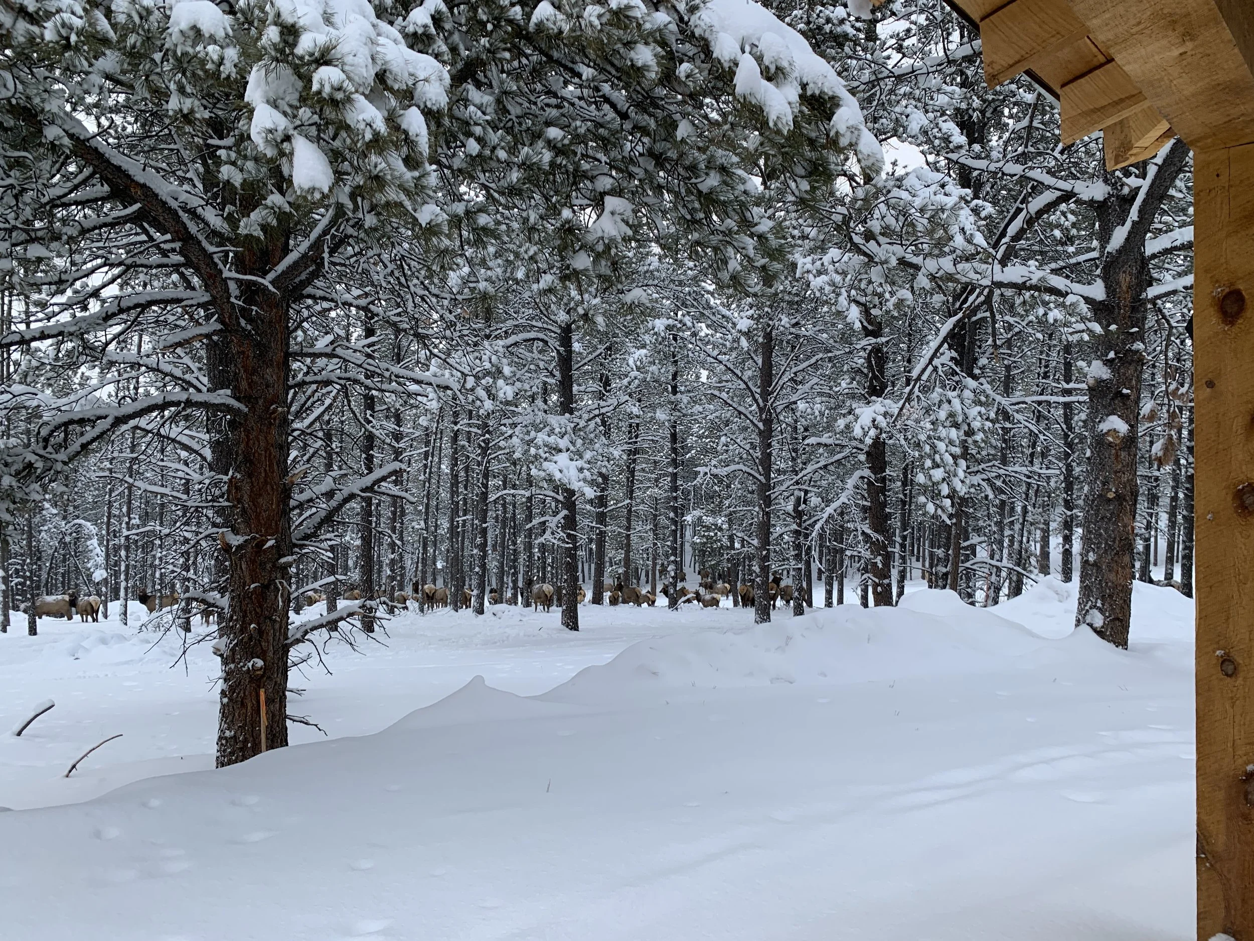 Around 40 elk came up to visit Scissor Tailed Lodge on New Years Day 2022!
